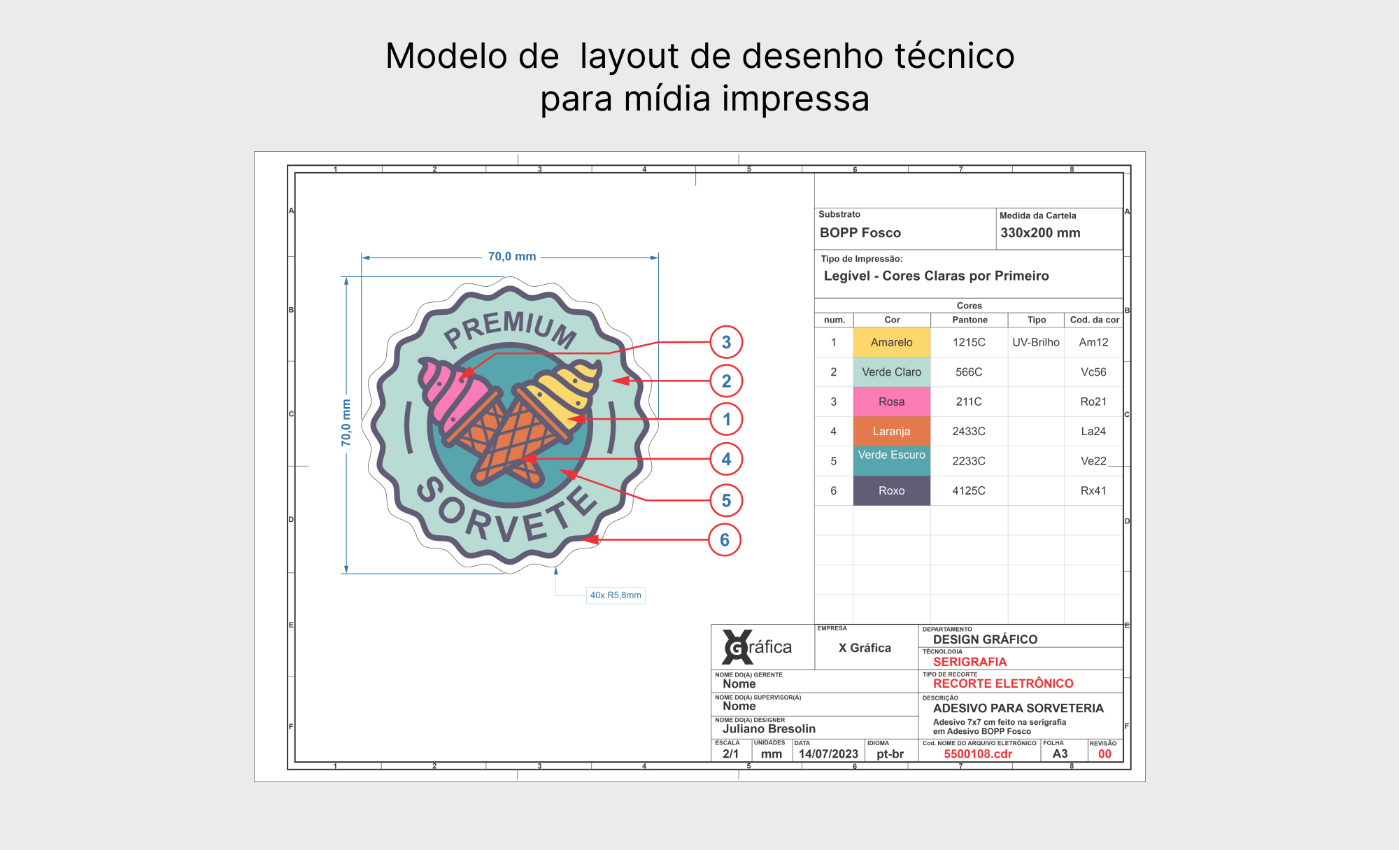Impressão gráfica e modelo de desenho técnico